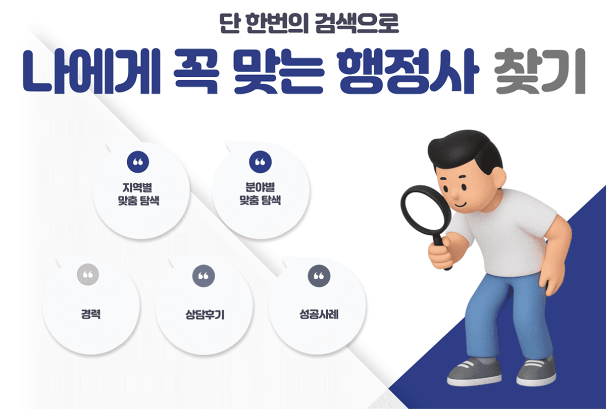 복잡한 행정 절차로 막막한 순간, 혼자 고민하지 마세요. 나만의 행정사가 당신의 든든한 파트너가 되어드립니다. 분야별·지역별 탐색부터 질문 게시판, 상담, 상담 결과지 제공까지 - 이 모든 과정을 한 곳에서 투명하고 효율적으로 경험해 보세요.